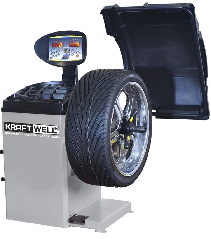 Балансировочный стенд полуавтоматический KraftWell CB67B для балансировки колес легковых автомобилей и легких грузовиков. Подходит для использования как в специализированных шинных центрах, так и в условиях небольшого пункта шиномонтажа.