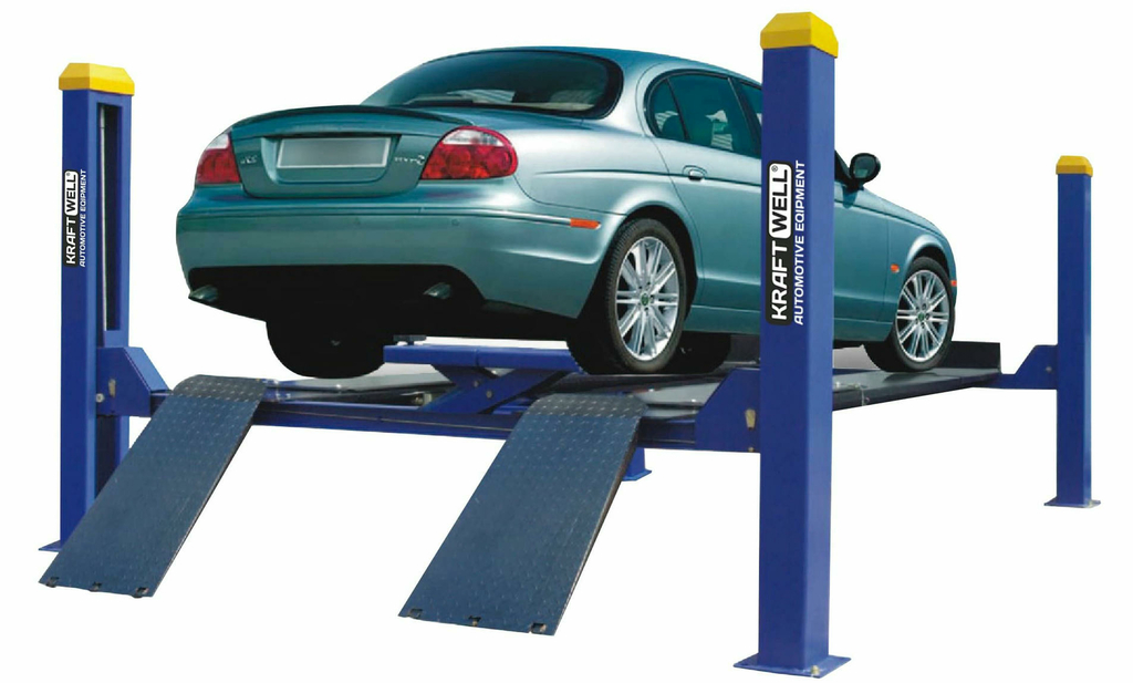 - Четырехстоечный подъемник платформы для сход-развала г/п 4000 кг. KRAFTWELL KRW4WA имеет перепускной клапан перегрузки.