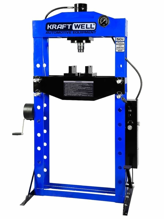 Пресс с ручным и ножным приводом KraftWell KRWPR50F не заменим в любом автосервисе, автомастерской или даже гараже постоянно требуется проведение операции по выпрессовке/запрессовке таких деталей, как ступичный подшипник или сайлентблоки рычагов. Ранее проведение данной операции вручную требовало значительных трудовых и временных затрат.Гидравлические прессы KRAFTWELL, в отличие от более дешевых аналогов, изготавливаются на современном и высокоточном оборудовании одного из ведущих заводов в Китае и исключительно из высококачественных материалов в соответствии с европейскими нормами безопасности и стандартами качества, что гарантирует длительный период эксплуатации и безопасность при работе. Качество подтверждено сертификатами EAC и CE.