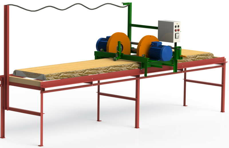 Доска укладывается по центру стола и обрезается сразу с двух сторон при движении пильной каретки как в прямом, так и в обратном направлении. Прижим доски обеспечивается прижимными роликами по центру доски. Дисковые пилы вращаются друг против друга, всегда в одном направлении, вт.ч. при смене направления пильного блока. Перемещение пильного блока осуществляется оператором станка вручную за поручни.