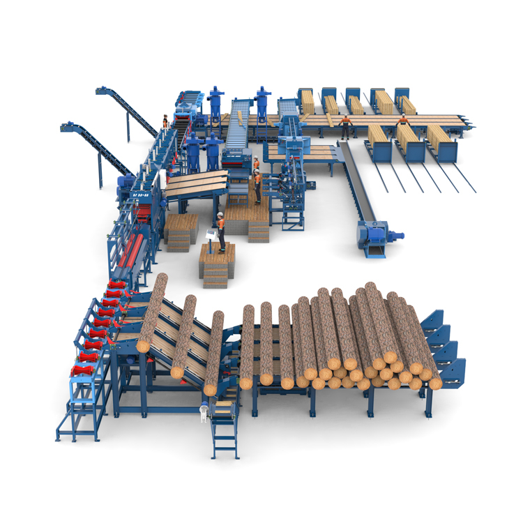 Установленный в технологической линии вместе с подавателем бревен и транспортёрами, станок характеризуется высокой производительностью распила, которая достигает до 300 – 400 м3 круглого леса в смену.