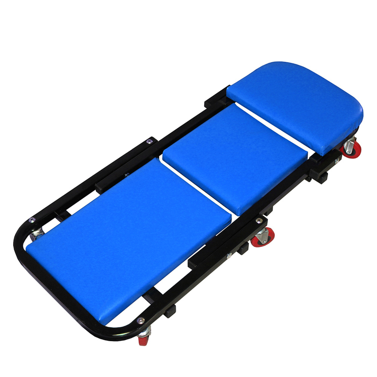Лежак AE&T TP-40-1A универсальное приспособление для удобного ремонта автомобиля. Устройство оборудовано 6 транспортировочными колесами, благодаря которым его легко перемещать по рабочей площадке. Модель оснащается двумя вместительными карманами для хранения различных мелких предметов. Лежак способен выдерживать вес до 120 кг.