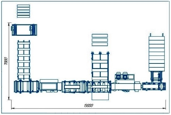 Линия производства паллетной заготовки. Перерабатывает бревна длиной 1.2 метра в заготовки для паллет. Габариты линии - 13 х 7 метров