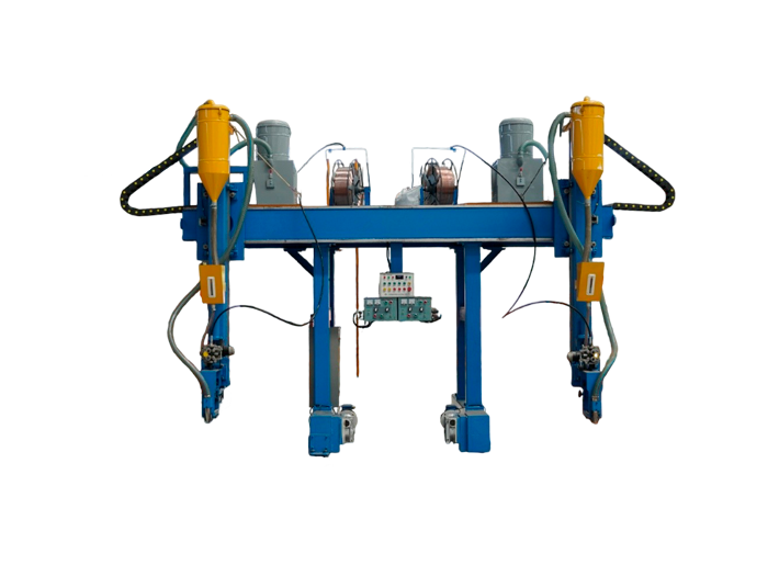 • Машина DXB-4000 для сварки двутавровых балок с двумя консольными балками предназначена для автоматической сварки H-образных (двутавровых) балок. Заготовка устанавливается на рабочий стол, производится настройка положения сварочной головки и параметров сварки. Управление запуском — однокнопочное;