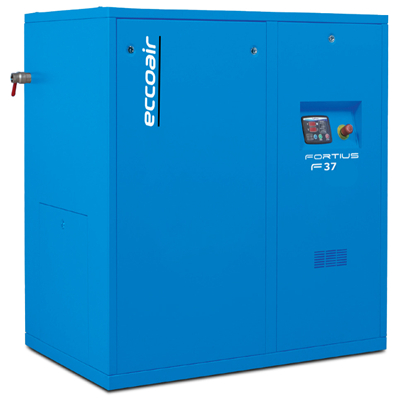 Мощный компрессор Eccoair F37 для производства сжатого воздуха. Сфера применения – промышленные предприятия, где необходимо построить пневмосеть для работы ручного инструмента и небольших станков или конвейерных линий.
