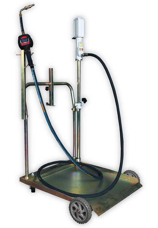 В конструкцию встроен расходомер электронного типа, который способен регулировать количество жидкости. Для перемещения без больших усилий можно использовать специализированную тележку.