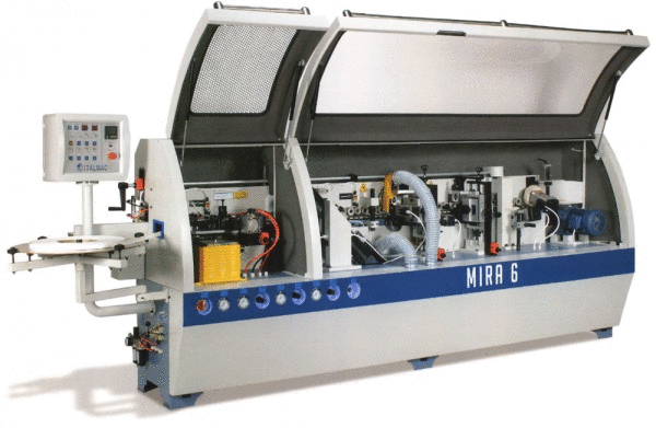 Кромкообл-й станок MIRA-6 для наклейки на прямые заготовки, 11 м/мин, кромка 0.4-3 мм,торцев-е,фрезер-е свесов, циклевание,полирование. Данные станки предназначена для тех, кому необходима универсальность и высокая производительность. Они могут может выполнять операции по облицовке кромок панелей кромочным материалом (АВS, PVC) в рулоне и полосовым материалом фиксированной длины. Машины могут легко и быстро переналаживаться, для того чтобы удовлетворять все производственные потребности, даже самые сложные.