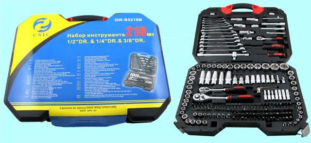 Отзывы к "Набор "CNIC"218 предметов GW-B5218M (торцевые головки 1/4"-1/2"-3/8", ключи, вставки) CrV в кейсе (упакованы по 2шт.)":