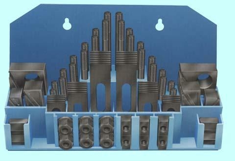 Набор предназначен для фиксации заготовок, деталей сложной формы при дальнейшей обработке на фрезерных, сверлильных и других станках , имеющих ширину паза 21.7-22мм на столе. В набор клиновых прижимов входят: Сухари (резьба М20х2,5) для станочных пазов 21,7мм - 6 шт. Гайка М20х2,5 с буртиком - 6 шт. Гайка М20х2,5 высокая - 4 шт. Клиновые опоры с рифлением - 12 шт. Прихват плоский с рифлением - 6 шт. Шпильки М20х2,5 длиной 75 мм - 4 шт. Шпильки М20х2,5 длиной 100 мм - 4 шт. Шпильки М20х2,5 длиной 125 мм - 4 шт. Шпильки М20х2,5 длиной 150 мм - 4 шт. Шпильки М20х2,5 длиной 175 мм - 4 шт. Шпильки М20х2,5 длиной 200 мм - 4 шт. Набор располагается на деревянной подставке.