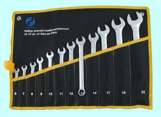 Набор ключей Комбинир. из 12-ти шт. (рожк. и накид.) (6 - 22) в сумке хром-ванадий (сатингфиниш) #8411 "CNIC"