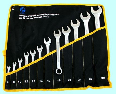 Набор ключей Комбинир. из 12-ти шт. включает в себя рожковые и накидные ключи с размерами от 6 до 30 мм. Удобно упакованы в сумку #016 CNIC для удобной транспортировки и хранения.