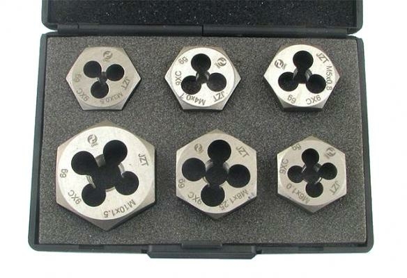 Комплектация набора: плашки шестигранные 3х0,5; 4х0,7; 5х0,8; 6х1,0; 8х1,25; 10х1,5.