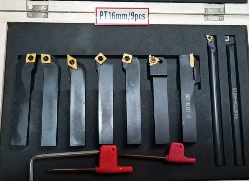 Набор резцов 16 мм с механическим креплением пластин 9 шт. с TIN покрытием применяется в работе на токарных станках для обработки заготовок;