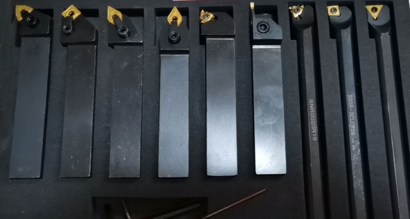 Набор резцов с механическим креплением пластин 9 шт. 25 мм применяется в работе на токарном станке для обработки заготовок; Механическое крепление позволяет заменять пластины; В набор входит ключ, с помощью которого можно быстро снимать и устанавливать пластины; Разные виды резцов в наборе позволяют совершать основные токарные работы.