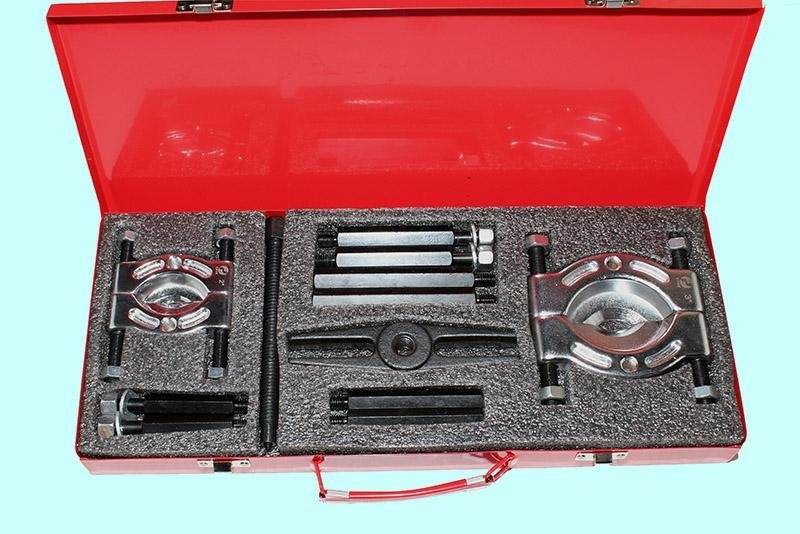 Комплектация набора: Съемник сепараторный 2" (30-50мм) - 1шт; Съемник сепараторный 3" (50-75мм) - 1шт; Траверса Н-образная - 1шт; Ходовой винт - 1шт; Удлинитель 60мм - 2шт; Удлинитель 90мм - 2шт; Удлинитель 80мм - 2шт; Удлинитель 115мм - 2шт.