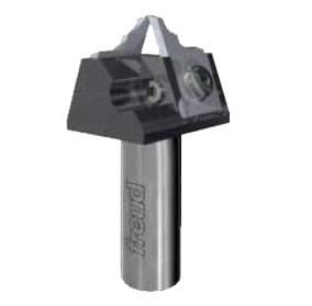 Специальня концевая фреза. Применяется для профилирования мягкой и твердой древесины,экзотической древесины,ДСП и МДФ в обычных и станках с ЧПУ с верхним шпинделем.Стоимость фрезы включает в себя само тело фрезы и 2 профильных ножа,винты и ключи для их обслуживания.Для каждой концевой фрезы минимальный заказ-6 профильных ножей одного стиля( 2 на фрезе и 4 запасных).