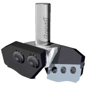 Специальня концевая фреза. Применяется для профилирования мягкой и твердой древесины,экзотической древесины,ДСП и МДФ в обычных и станках с ЧПУ с верхним шпинделем.Стоимость фрезы включает в себя само тело фрезы и 2 профильных ножа,винты и ключи для их обслуживания.Для каждой концевой фрезы минимальный заказ-6 профильных ножей одного стиля( 2 на фрезе и 4 запасных).