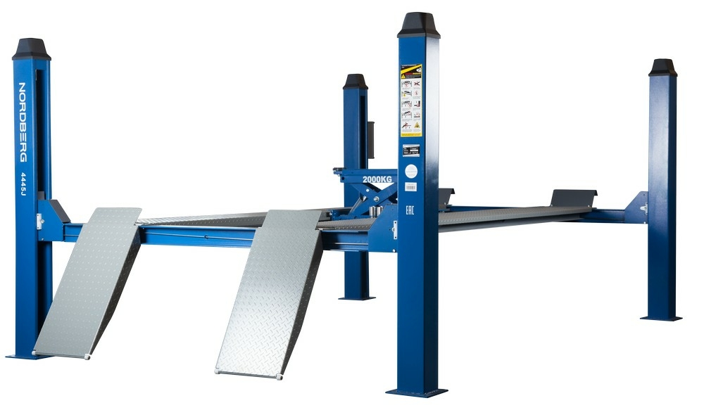 Подъемник 380V 4х стоечный 4.5т, c ручной траверсой 2т, 380В NORDBERG 4445J, идеальное решение для ремонта легковых авто, внедорожников, минивэнов и легких грузовиков