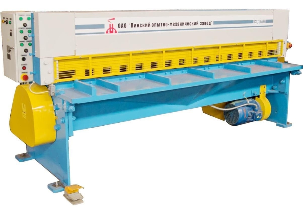 Гильотина электромеханическая СТД 9, СТД-9А. Ножницы гильотинные механические с наклонным ножом предназначены для резки листового материала. Могут быть использованы на заготовительных участках или в цехах предприятий, выпускающих изделия промышленной вентиляции, а также там, где требуется резка листового материала.