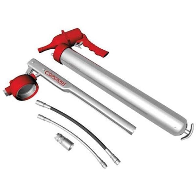 Пневмошприц Сорокин 11.81 предназначен для нагнетания густой смазки типа солидола при помощи ручного или пневматического привода в различные узлы и детали автомобилей и механизмов.