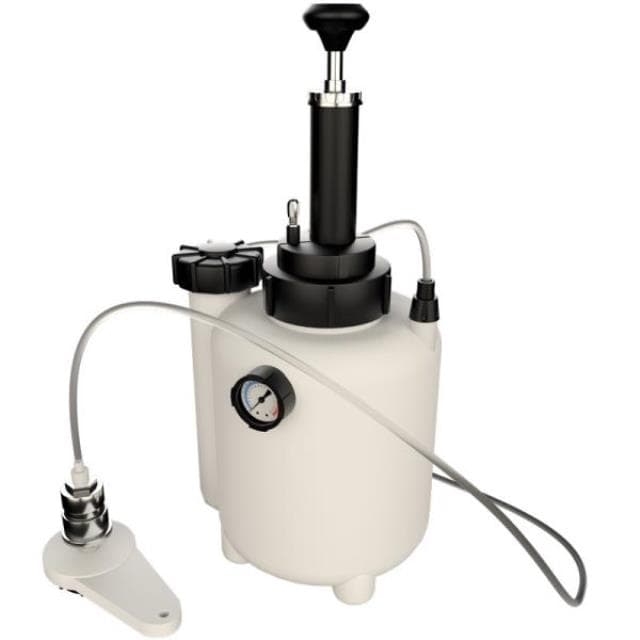 В комплекте поставки нагнетательный бак с манометром, шланг с быстрым разъемом, крышка для бачка тормозной жидкости с быстрым разъемом, ключ для завинчивания крышки бачка тормозной жидкости.