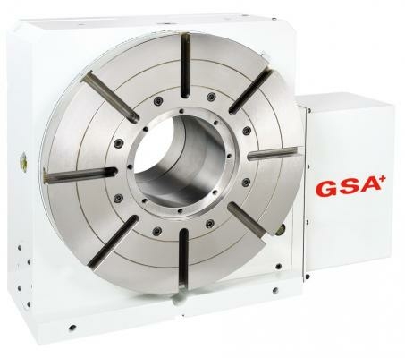Увеличенное отверстие в шпинделе позволяет закреплять трубные заготовки. Поворотные столы данного типа широко применяются на вертикальных обрабатывающих центрах и фрезерных станках. Двигатель может быть установлен как с правой, так и с левой стороны.