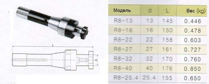- Хвостовик R8 с резьбой 7/16 -20UNF