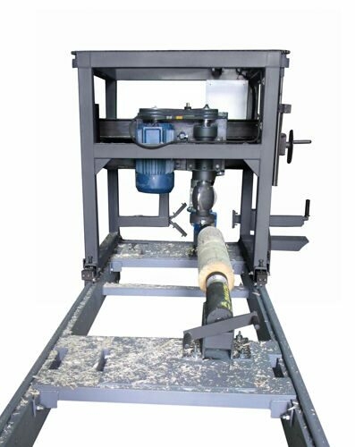 Для производства калиброванного бревна с монтажным пазом и чашами применяют оцилиндровочный станок по дереву ОС1-400. Представленная версия работает с заготовками диаметром до 300 мм, длиной до 6,5 м. Она предназначена для черновой и чистовой оцилиндровки бревна, нарезки монтажных чаш, устройства продольного лунного паза, строгания плоской поверхности.