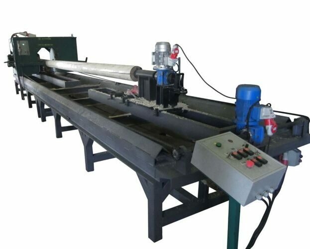 Для производства калиброванных бревен применяют оцилиндровочный станок ОСМ-500 «Супер». Это модернизированная версия стенка ОСМ-500. Многошпиндельная модель позволяет работать с бревнами диаметром до 360 мм, за один проход выдает чистое калиброванное изделие с монтажным пазом и компенсационным пропилом.