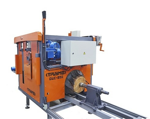 Оцилиндровочный станок «ТРИУМФ» ОЦС-260 предназначен для оцилиндровки бревен диаметром до 400 мм. Станок представляет собой портал, с двумя подвижными каретками. На каждой каретке смонтирован фрезерный узел, который приводится в действие от электродвигателя 7,5 кВт. Портал движется по направляющим вдоль заготовки, закрепленной в центрах.
