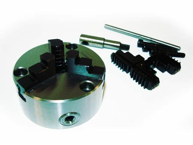 Комплект поставки: Патрон 3-кулачковый ( с установленными прямыми кулачками) , Комплект обратных кулачков, ключ патронный , установочные болты 3шт. Материал Сталь.