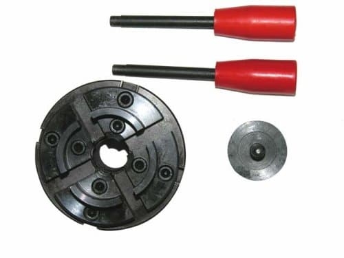 Четырехкулачковый патрон для токарного станка по дереву "Корвет-74", "Корвет-75", "Корвет-76". В комплект поставки входят два ключа для затягивания патрона, вставка винтовая. Диаметр патрона 100 мм. Посадочная резьба 1х 8 TPI. Кулачки имеют внутренний диаметр 40-70 мм, внешний диаметр 50-80 мм.
