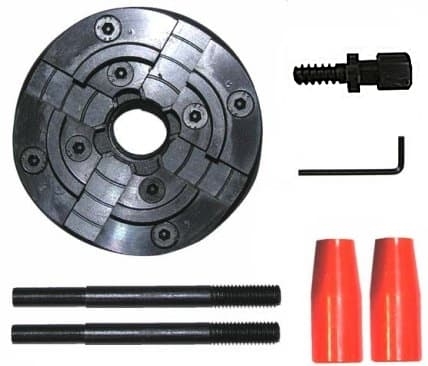 Четырехкулачковый патрон для токарного станка по дереву "Корвет-74", "Корвет-75", "Корвет-76". В комплект поставки входят 2 ключа для закручивания патрона, шестигранный ключ 4 мм, вставка винтовая. Диаметр патрона 100 мм. Посадочная резьба 1х8 TPI. Кулачки имеют внутренний диаметр 42-70 мм, внешний диаметр 50-80 мм.