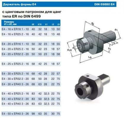 Держатель для цанг типа ER - цанговый патрон, (форма держателя Е4) с хвостовиком VDI 3425 по DIN 69880 (ГОСТ 24900-81). Применяется для работы на станках с числовым програмным управлением (ЧПУ).- Доставка с фикс. стоимостью (бесплатно от 50 тыс.р.) 100 ₽ подробнее