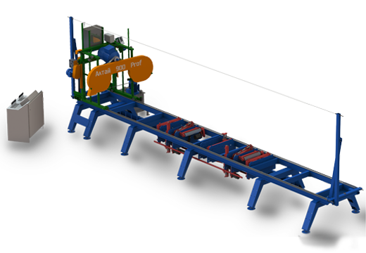 Электромеханическая система продольного перемещения пильного блока вместе с электронной линейкой контролирующей положение пилы, позволяют выполнять весь цикл работ по распиловке бревен – одному человеку!