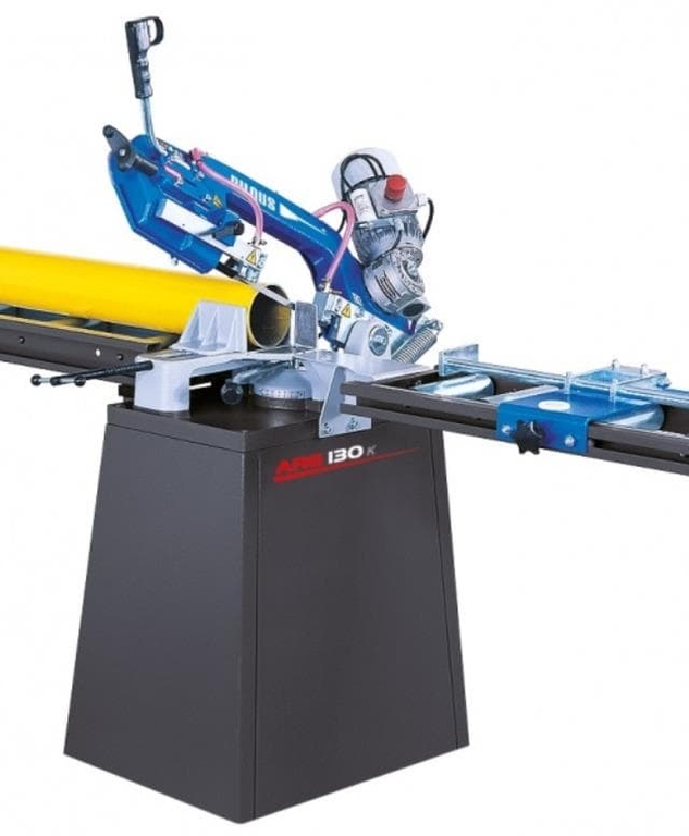 Универсальный ленточнопильный станок ARG 130 K малых размеров, предназначен для работы в мастерских и ремонтных цехах производств, удобен при проведении местных монтажных работах. Жесткая конструкция станка выполнена литьем из серого чугуна. Операции подачи пилы и зажима заготовок, а также подъем пильной рамы на станке осуществляются вручную. Станок оснащен разгрузочно-поддерживающими пружинами.