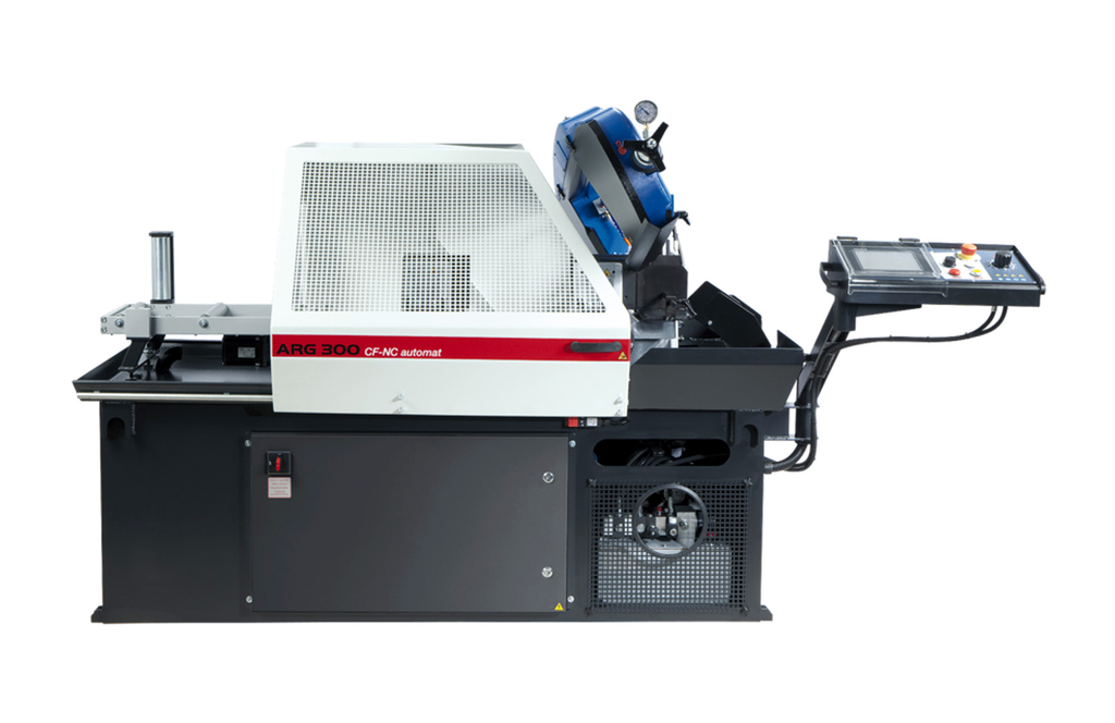 Полностью автоматический ленточнопильный станок с ЧПУ Pilous ARG 330 DC CF-NC Automat предназначен для пиления больших серий заготовок в условиях поточного беспрерывного производства, включая обработку труднообрабатываемых материалов и заготовок с большим сплошным сечением. Совершенно новая технология литья пильной рамы и обновленный уникальный дизайн. Новое, выдающееся решение в категории двухколонных станков – это использование литой пильной рамы. В сочетании с массивной двухколонной конструкцией и линейными направляющими, все это позволяет достигнуть максимально возможной жесткости системы и получить сверхточный распил любых материалов. Станок оборудован новой системой управления и сервоприводом для подачи заготовок. Сервопривод с прецизионной ШВП обеспечивает максимальную точность и скорость подачи, даже при отрезке заготовок большой длины. Предусмотрена возможность выбора скорости подачи заготовок: 27, 42 или 50 мм/сек. Максимальная длина единичного хода равна 500 мм. Поворотный пульт управления оснащен большим цветным сенсорным дисплеем. Система ЧПУ управляет всеми функциями станка, позволяет записывать более 60 индивидуальных программ резки с беспрерывным переходом от одной к другой. Предусмотрена возможность записи комментариев к каждой программе, например, номер чертежа или имя изделия. Предусмотрена возможность задания программ процессов резки для различного числа заготовок с разными размерами при беспрерывной работе. Станок может работать как в автоматическом и полу-автоматическом, так и в ручном режимах. Зажим тисков, подача и подъем пильной рамы в заданную позицию, в соответствии с размерами деталей, производится гидравлической системой. «Плавающие» подающие тиски компенсируют изогнутость заготовок по длине и обеспечивают неизменную точность позиционирования. Регулирование давления зажима подающих и основных тисков включено в базовую комплектацию. Высокие показатели производительности достигаются также вследствие использования частотного регулирования привода вращения пилы, что позволяет плавно регулировать скорость резания от 15 до 90 м/мин, что также многократно увеличивает точность реза и стойкость ленточной пилы. Максимальная точность подачи и резки обеспечивается очень жесткой конструкцией станка, наличием массивных основных узлов, отлитых из серого чугуна и жесткой рамы подающего механизма. Крупногабаритная тумба и массивные узлы крепления рамы, большая поверхность загрузочной зоны стола делают работу станка абсолютно стабильной и точной даже при обработке очень крупных заготовок. Станок, в базовой комплектации оснащается съемным контейнером для стружки или, опционально, конвейером для сбора стружки. В новой модели используется полотно с шириной 34 мм и толщиной 1.1 мм, представленное на рынке широкой номенклатурой, для распиловки труднообрабатываемых материалов с большими сплошными сечениями, в том числе нержавеющих и инструментальных сталей.