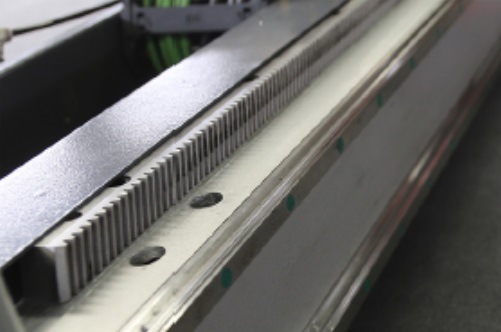 КОСОЗУБАЯ РЕЙКА ПО ОСЯМ Х И У Для перемещения по осям Х и Y на станке используется косозубая рейка. Это решение позволяет добиться высоких скоростных показателей без ущерба точности обработки. |
