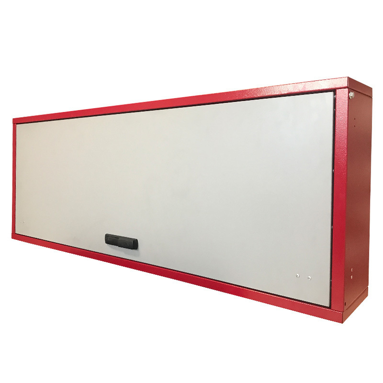 Полка универсальная предназначена для хранения различного инструмента.Изготовлена из металла холодного проката толщиной 0,8 мм.Дверь полки запирается на ключ. При отпирании и повороте ручки замка, поднимается и удерживается автоматически на газлифтах (100 Nm). При запирании ригели замка входят в боковые опоры полки (сейфовая система запирания).Задняя стенка изготовлена из перфорированного металла с различной конфигурацией отверстий - 22х5мм (прямоугольные) / 5мм (круглые).Для размещения инструмента отдельно приобретаются крюки,универсальные держатели, держатели отвёрток, держатели гаечных ключей.Специальные держатели позволяют устанавливать пластиковые лотки для хранения метизов в любой удобной конфигурации. Большой выбор аксессуаров обеспечивает пользователю создание собственной уникальной конфигурации внутреннего пространства полки.Двусторонняя порошковая окраска надёжно защищает изделие от коррозии.Предусмотрен вариант позиционирования с открыванием дверцы вниз.Возможна установка дополнительного оборудования – промышленного светодиодногосветильника, резинового коврика или USB-светильника на магнитах, который будет включаться по датчику движения при открытии дверцы. Полка поставляется в разобранном виде.Полка настенная с перфорацией технические характеристики