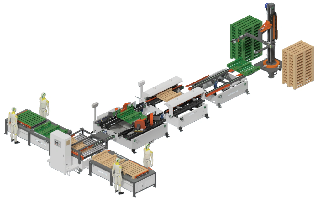 Полуавтоматическая линия для сборки европоддонов SF 500 предназначена для полной сборки европоддона размером 1300 х 800 мм за один проход.