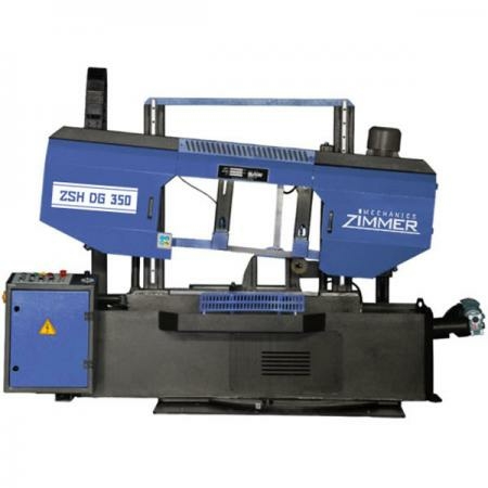 Полуавтоматический ленточнопильный станок ZIMMER ZSH DG 280, предназначенный для пиления труб, профильных и сплошных заготовок, максимальным диаметром круга 280 мм и прямоугольной заготовки 280x290 мм под углом в диапазоне от 90° до 45° градусов. Для распиловки заготовки под углом предусмотрен ручной поворотный стол. Угол поворота стола отслеживается на механической линейке, либо на электронном дисплее (доп. опция).