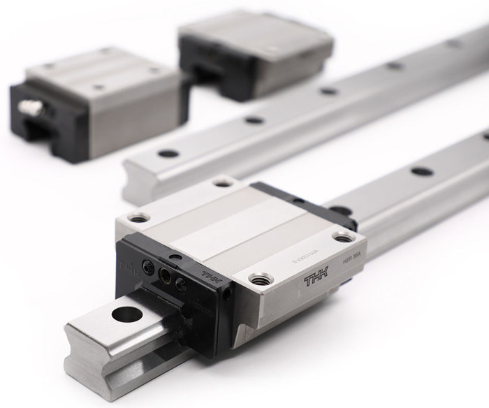 Роликовые направляющие THK По трем осям устанавливаются либо японские роликовые направляющие THK, либо немецкие Rexroth. Такой выбор обусловлен высокой жесткостью, высокой точностью и низким показателем износа и высокой нагрузкой в любом направлении. Ролики обеспечивают низкий показатель трения и плавность перемещений. Так же роликовые каретки оснащены уплотнительными прокладками, защитными скребками, пыльниками и т.п., что позволяет использовать их в любой рабочей среде. |