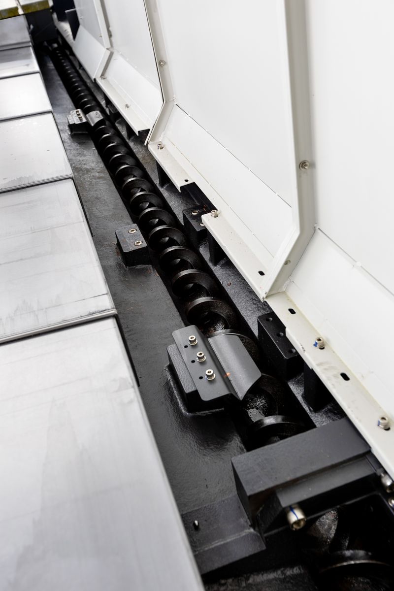 Каретки качения Количество кареток качения по оси X равно 6, каждая несет нагрузку до 165 кН. Нагрузка по массе заготовки - до 10 тонн. |