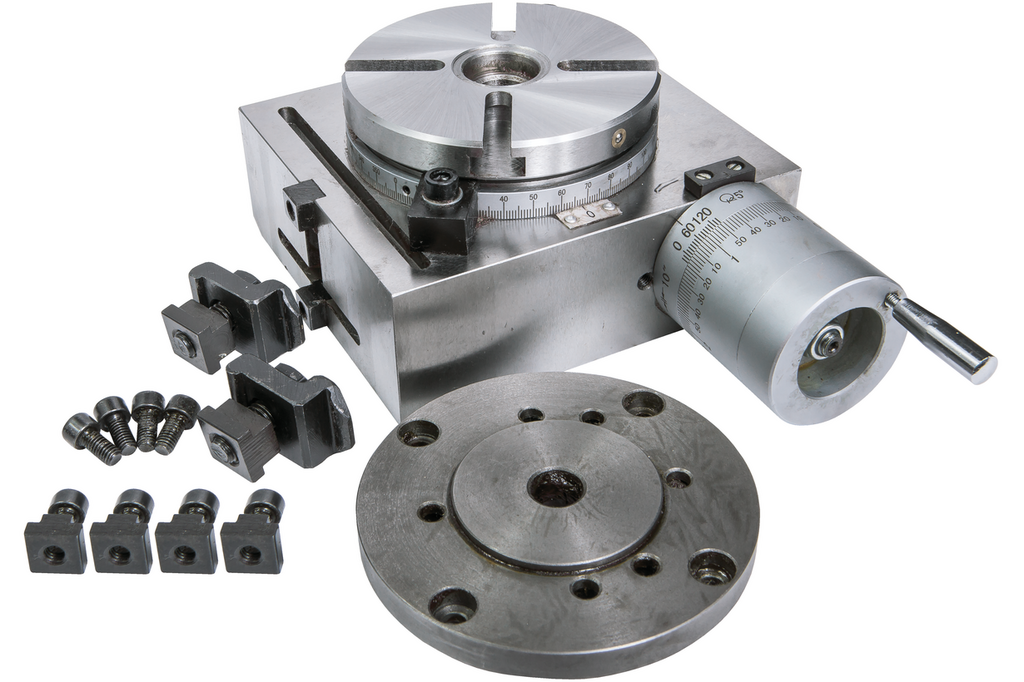 Поворотный стол диаметром 100 мм является одним из вариантов основной оснастки, используемой для обработки деталей и заготовок на фрезерно-сверлильных станках модели JMD-1, JMD-X1, JMD-1L, JMD-2, JUM-X2, JMD-16A, JMD- 20LA и JMD-20LA DRO. Стол имеет поворотный механизм, обеспечивающий круговое вращение на 3600 вокруг оси стола. Приспособление обладает техническими возможностями для позиционирования обрабатываемой детали в широком диапазоне, как в горизонтальном, так и в вертикальном положении. Поворотный стол имеет центральной отверстие с конусом МТ2 и Т-образные углубления для установки прихватов.