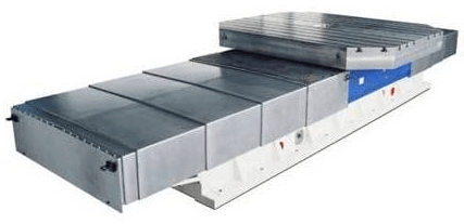 Поворотные столы с продольным ходом могут применяться в горизонтально-расточных станках как с индексным, так и с непрерывным углом поворота. Комбинация высокоточного червячного колеса из бронзо-никелевого сплава и стального закаленного червяка обеспечивают длительное сохранение точности позиционирования.