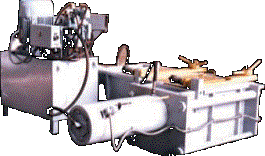 Пресс предназначен для пакетирования легковесных отходов стальных и цветных металлов, получаемых при производстве консервной тары. Пакетирование отходов производится в автоматическом цикле в прессовой камере поочередно ползунами первого и второго прессования. Ползун первого прессования сжимает массу отходов до размера 300 мм по ширине пакета. Ползун второго прессования сдавливает пакет до достижения определенного давления, величина которого регулируется.