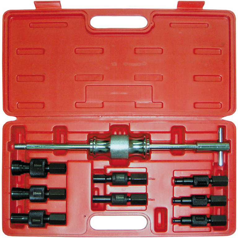 Набор используется для снятия подшипников и втулок коробки передач, а также колесных подшипников мотоцикла. Комплектация: обратный молоток конусные втулки 8- 10-12-15-17-20-25-30мм.Приспособление для выпрессовки втулки и врезного подшипника технические характеристики