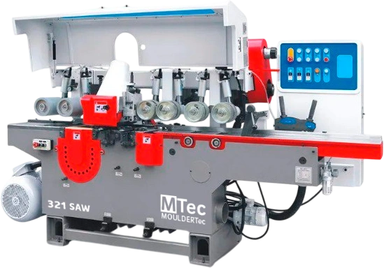 Продольно-фрезерный станок с пильным валом MTec 321 saw предназначен для плоскостной обработки детали с двух сторон (функция рейсмуса) с последующим раскроем заготовки на рейки при помощи пильного вала