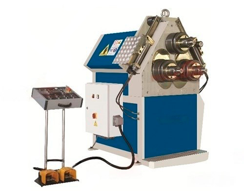 • Станок оснащен гидравлическим приводом для перемещения двух нижних роликов. Такая конструкция обеспечивает равномерное распределение давления и позволяет эффективно работать с материалами различной толщины и жесткости;