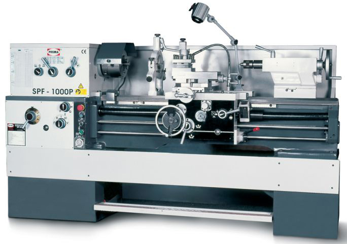 Универсальный токарный станок PROMA SPF-1000P с УЦИ предназначен для обработки тел вращения путём снятия с них стружки при обточке. На станке можно выполнять различные виды токарной обработки: обтачивание цилиндрических, конических, фасонных поверхностей, подрезку торцов, отрезку, растачивание, а также сверление и развёртывание отверстий, нарезание резьбы и накатку рифлений, притирку и т.п. Модель оснащена ножным тормозом, лампой рабочего освещения и системой охлаждения СОЖ.